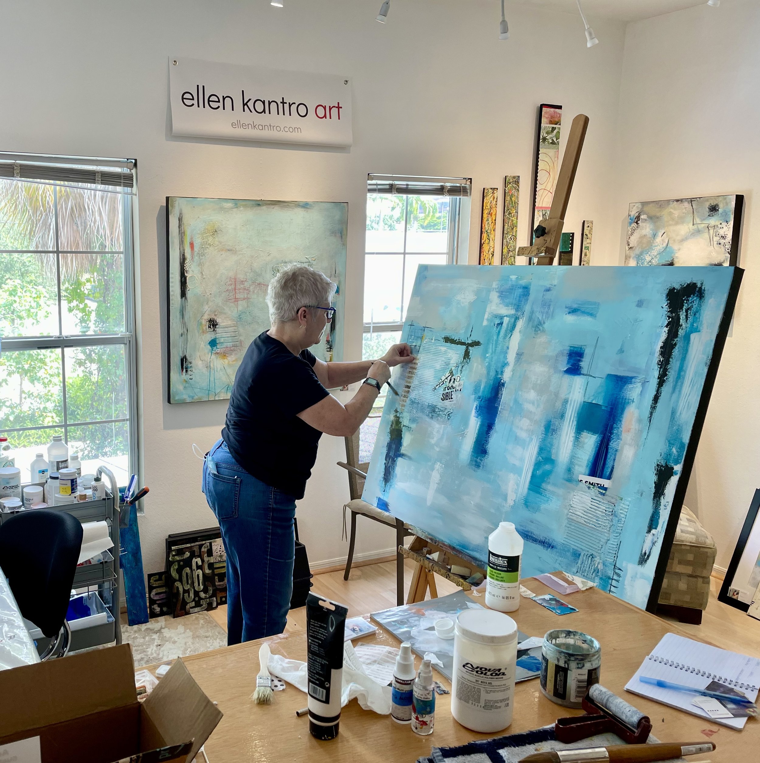 Ellen’s path to becoming an abstract artist took many turns. Discouraged from attending art school in favor of a more academic path, she focused on her other passion: musical theatre where she was a touring stage manager for several years. After a minor injury sidelined her for a short time, she became a graphic designer which led to user interface design, software development, and life on the corporate track - culminating in a variety of creative roles as a corporate executive in a Fortune 100 company.
